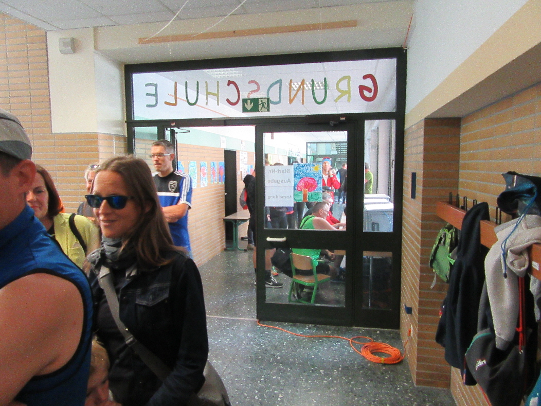 Der Start für den Halbmarathon war am Samstag um 18h angesetzt. Also hieß es, rechtzeitig los, um die Startunterlagen abzuholen und anschließend mit dem angebotenen Busshuttel zum Startbereich in Daun zu fahren. Das Start/Zielgelände an der Schule Gillenfeld bot einen schönen Rahmen für das Organisatorische. Startnummern abholen und schließlich ab zum Busparkplatz am Feuerwehrhaus. Denn von hieraus wurden die Teilnehmer zu den unterschiedlichen Startbereichen der verschiedenen Distanzen gebracht.